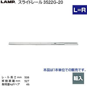 スガツネ 3段引 スライドレール LAMP 3522G-20 (レール長さ 508mm) (厚み19.1×高さ35.3mm) 1本売り「スガツネ製品ならカネマサ」 | |