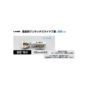 ★ポイント5倍!!19日20時スタート★スガツネ工業 J95-24-25T / キャッチなし・全かぶせ(最大25mm) LAMP 重量用 J95シリーズ ワンタッチスライド丁番 カップ径φ40 堀込深さ15mm 推奨扉厚18-30mm 推奨ガラス扉8・10mm 93度開き【取付ビス付】※座金別売り※ | |
