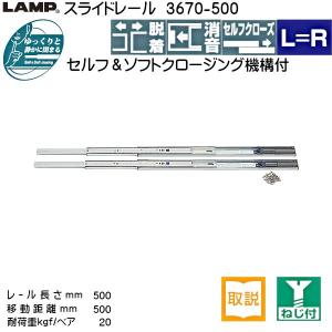 スライドレール セルフ ソフトクロージング LAMP スガツネ 3670-500 耐荷重20kgf/ペア 長さ500mm 移動距離500mm 左右1セット | |