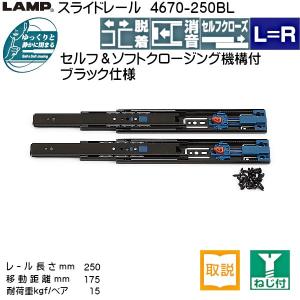 黒色 セルフ&ソフトクロージング機構付 スライドレール LAMP スガツネ 4670-250BL 長さ250mm 耐荷重15kgf 黒クロメート 左右1セット | |
