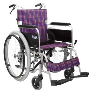 【非課税】カワムラサイクル アルミ製標準車いす エアタイヤ仕様 バンドブレーキ 背折れタイプ シート幅40cm 中床22インチ 紫チェック [自走・介助兼用] | |