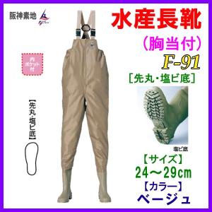 阪神素地 水産長靴 (先丸・塩ビ底) (胸当付) F-91 ベージュ 27cm | |