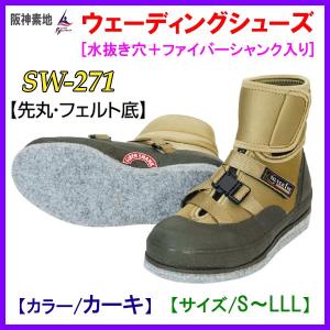 阪神素地 ウェーディングシューズ 水抜き穴+ファイバーシャンク SW-271 先丸・フェルト底 カーキ/L(25.5〜26.5cm) / 釣具 | |