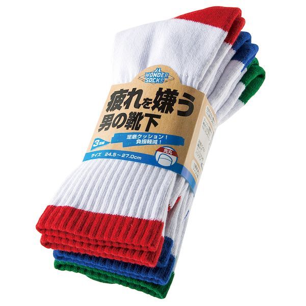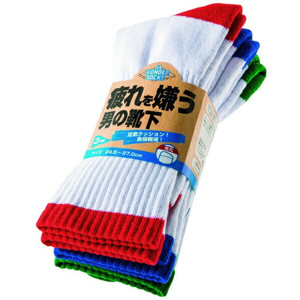 Wondersocks 疲れを嫌う男の靴下 ホワイト×カラー 先丸3足組 24.5〜27cm 取寄品 ユニワールド WS-631 ( クッション性 高密度 パイル 衝撃 軽減 楽々) | |