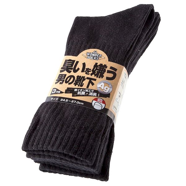 Wondersocks 臭いを嫌う男の靴下 先丸3足組 黒 24.5~27cm 取寄品 ユニワールド WS-7021 ( 銀イオン 抗菌 消臭 悪臭 ag 防臭) | |