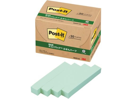 スリーエム ポストイット通常粘着製品エコノパック ふせんハーフ グリーン 75mm×12.5mm 100枚×20パッド 5601-G ふせん 付箋 お得パック ポストイット】 /4519001540041 | |