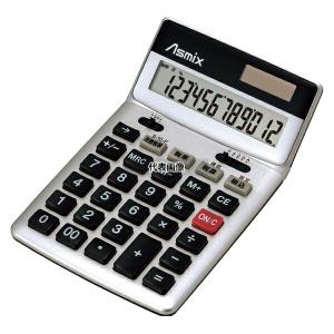 電卓 消費税率切替ボタンつき 傾斜角度調節可 12桁 チルトあり Asmix アスカ C1236S シルバー 計算機 | |