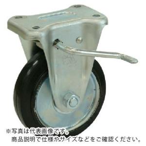 シシク スタンダードプレスキャスター 固定左ストッパー付 100径 ゴム車輪