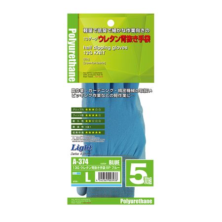 おたふく手袋 13G ウレタン背抜き手袋 5双組 M ブルー 2111568A-374 ライトシリーズ A-374 | |