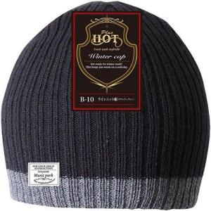 おたふく手袋 ラインニット帽 ブラック×グレー 【品番:B-10】 | |