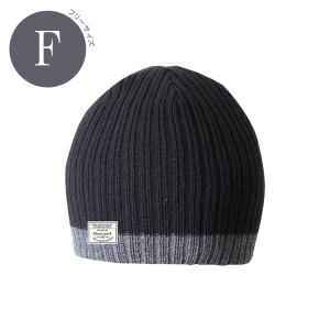 おたふく ラインニット帽 ブラック×グレー