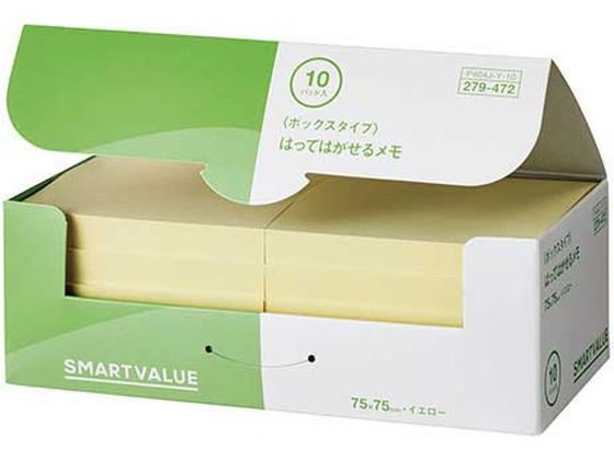 スマートバリュー ふせんBOX 75×75mm 黄 10冊 P404J-Y-10 大 幅 ふせん インデックス メモ ノート | |