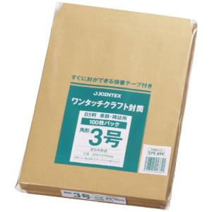 封筒 角3 B5サイズが折らないでそのまま入る JOINTEX ワンタッチ事務用封筒 クラフト封筒 紙厚85g 100枚入 郵便番号枠無 定形外郵便 | |