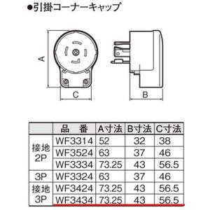 電設資材 パナソニック WF3434(発注単位:5) 引掛コーナーキャップ 横型 接地3P 30A 250V | |