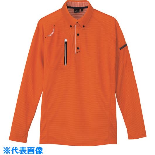 ■アイトス 長袖ボタンダウンポロシャツ(男女兼用) オレンジ S〔品番:10604163S〕【1448916:0】[送料別途見積り][掲外取寄][店頭受取不可] | |
