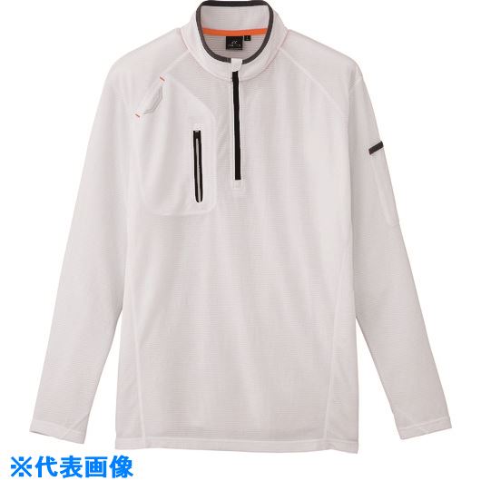 ■アイトス 長袖ハーフZIPシャツ(男女兼用) ホワイト 6L〔品番:106060016L〕【1449039:0】[送料別途見積り][掲外取寄][店頭受取不可] | |