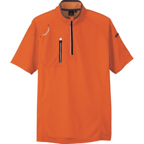 ■アイトス 半袖ハーフZIPシャツ(男女兼用) オレンジ L〔品番:10607163L〕【1436440:0】[送料別途見積り][掲外取寄][店頭受取不可] | |