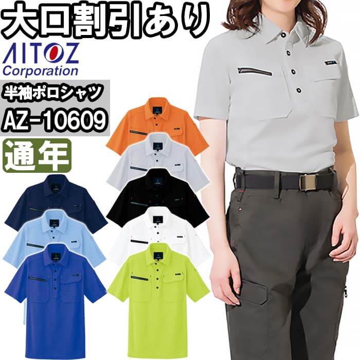 【P2倍】作業服 半袖ポロシャツ AZ-10609 SS-LL 通年 アイトス AITOZ 制電 作業着 ユニセックス メンズ レディース | |