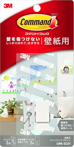 3M コマンドフック 壁紙用 フォトクリップ(クリップ2個・タブS2枚入) ホワイト