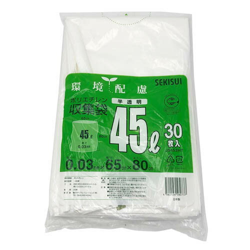 積水マテリアル 再生原料100%ごみ袋 半透明45L(30枚入) | |