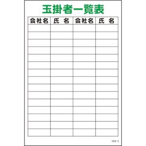 グリーンクロス マンガ標識 GEB-5 玉掛者一覧表 〔品番:1145170805〕[1270784]「送料別途見積り,法人・事業所限定」【大型】 | |