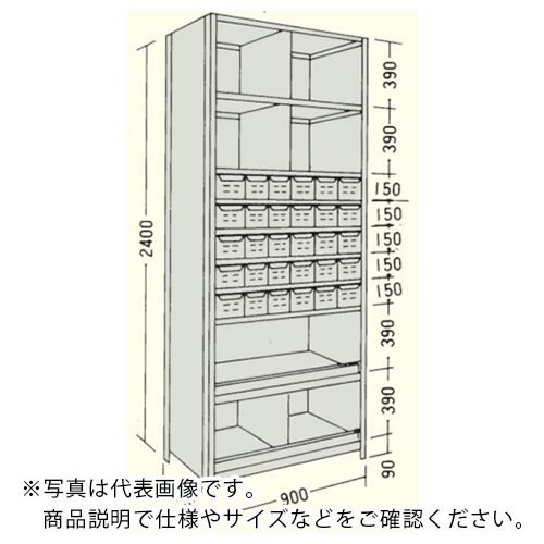 NF 引出し付軽量物品棚W900D300H2400F10 LA83K-710 1台 ■▼135-5519 【送料都度見積】 | |