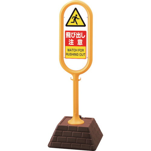 ▼【片面】 サインポスト イエロー【 飛び出し注意 】 屋外 WATCH FOR RUSHING OUT 注意喚起 置き看板 自立サイン 立て看板 スタンド看板 un-874-631YE | |