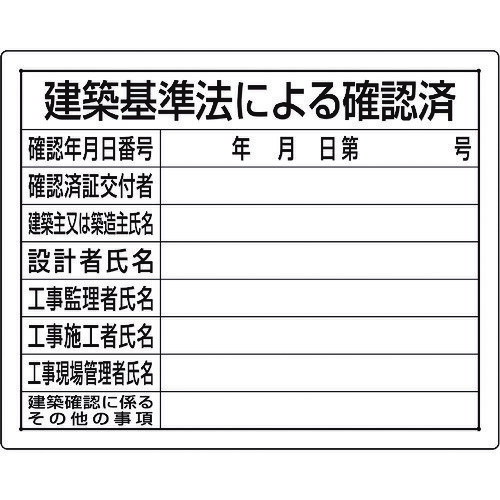 建築基準法による確認済 H40×W50cm 鉄板(普通山) / 法令許可票 表示板 保安用品 工事用品 工事用看板 標識 看板 パネル 工事施工 現場 un-302-02B | |