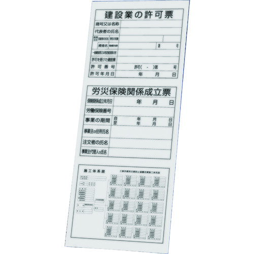許可票 立看板 法令許可票 板のみ / 建設業の許可票 労災保険関係成立票 施工体系図 許可票 許可票 看板 標識 パネル 安全標識 スタンド看板 un-303-33A | |