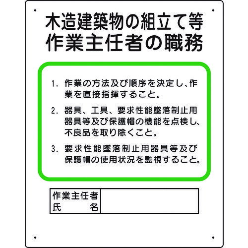 ユニット 作業主任者職務板 木造建築物の組立て等 356-25A [171-553686] | |