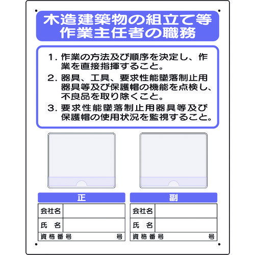 ユニット(UNIT) 写真ケース付作業主任者標識 木造建築物… 【品番:356-47A】 | |