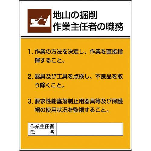 ユニット 808-20A 作業主任者職務板 地山の掘削 作業主任者の職務 | |