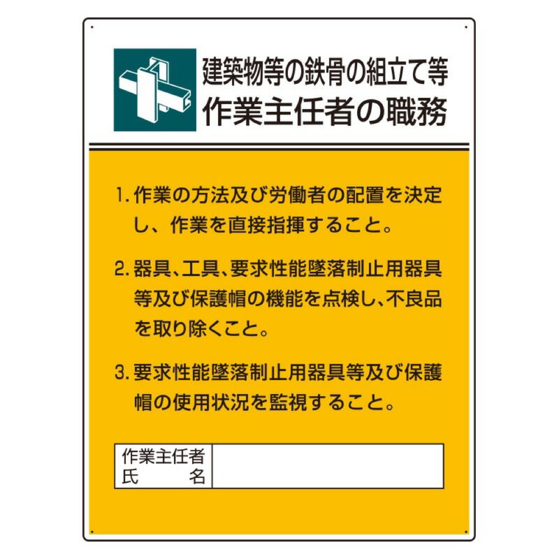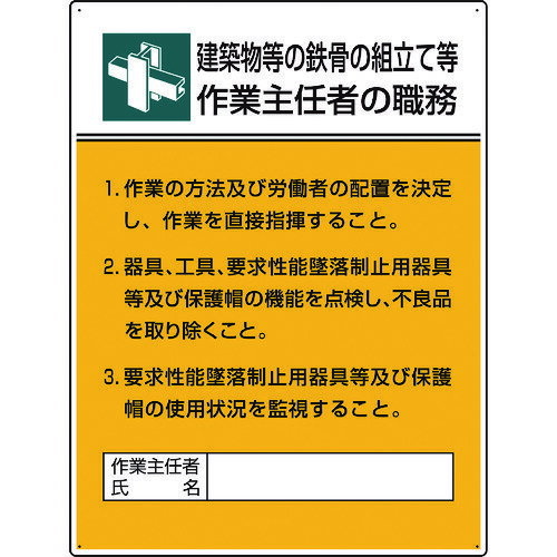 ユニット 808-22A 作業主任者職務板 鉄骨の組立て等 作業主任者の職務 | |