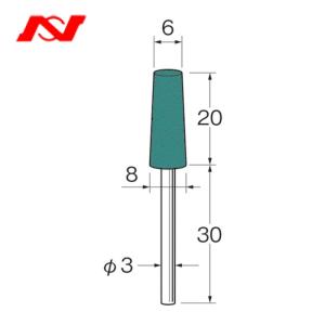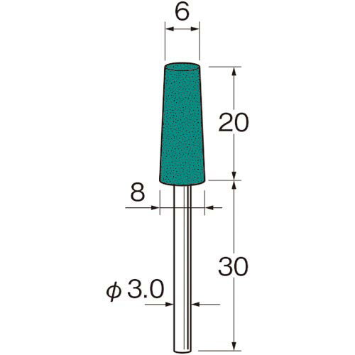 【メール便対応】日本精密機械工作 リューター 軸付グリーンカーボランダムゴム砥石外径(mm):6粒度(#):220 【品番:R3323】 | |