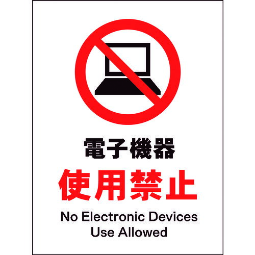グリーンクロス JIS 禁止標識 タテ JHA-21M 電子機器使用禁止 ■▼177-4492 6300003085 1枚 | |