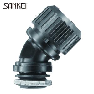 SANKEI サンフレキROBO 45°コネクタ ノックアウト接続用 管用平行おねじ付き 黒色