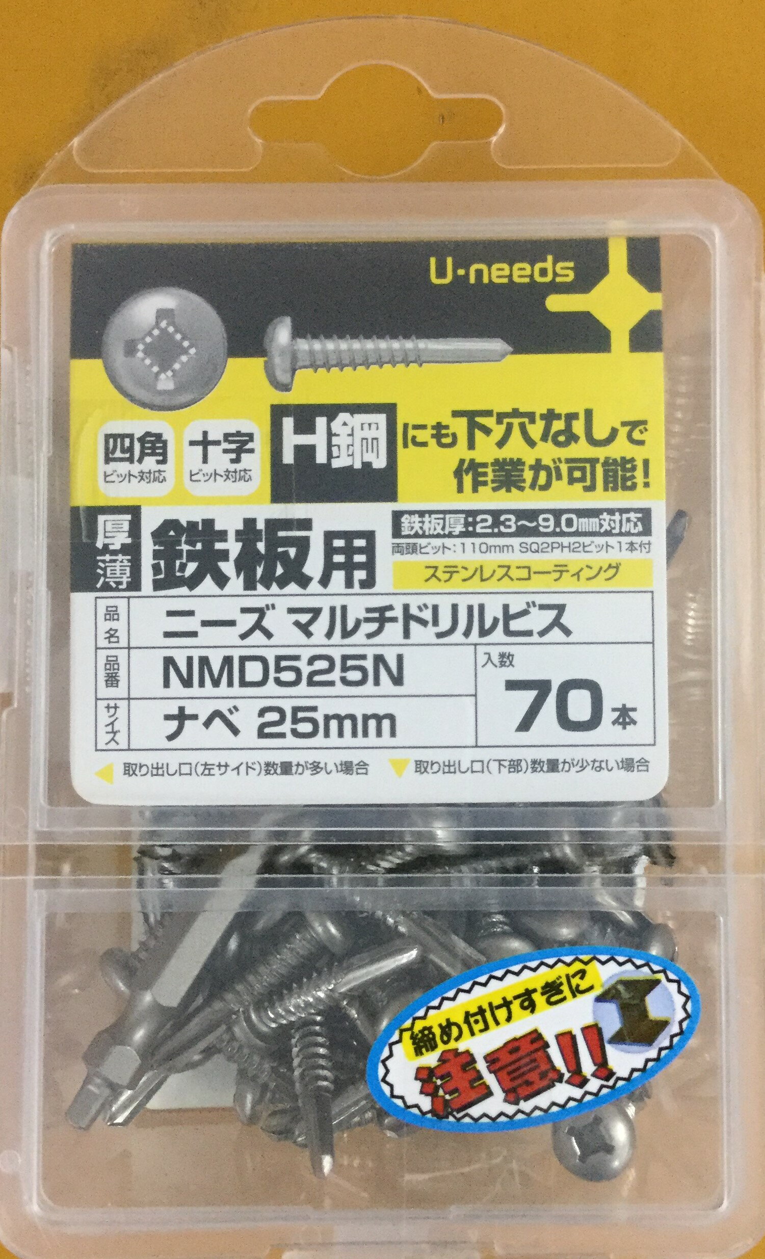 ユ・ニーズ 鉄板用 ステンコート ニーズ マルチドリルビス ナベ 5×25mm 70本入 NMD525N | |