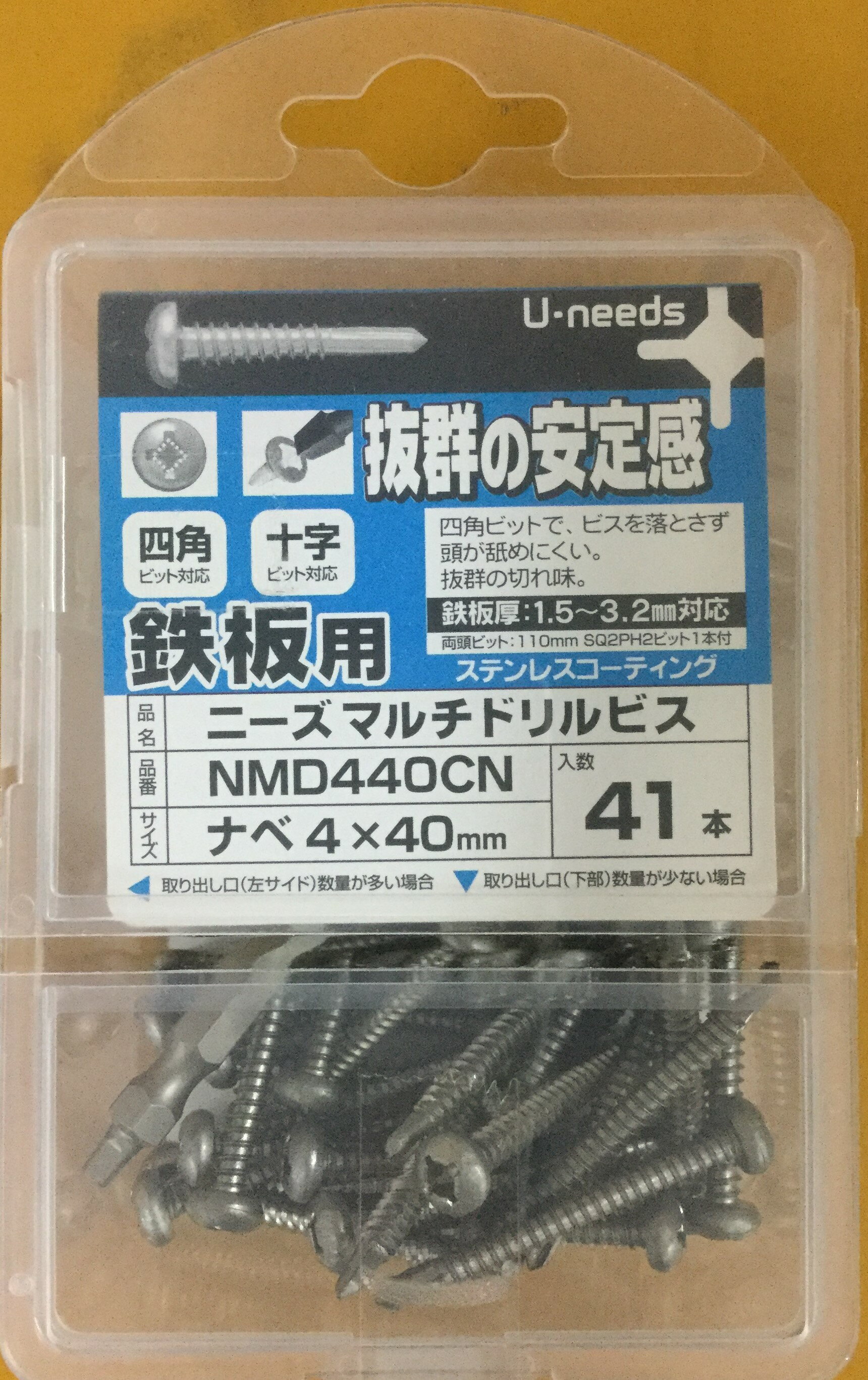 ユニーズ マルチドリルビスステンレスコーティング4×40ナベ(41本入)SQ2PH2(四角ビット)-110mm×1本付 NMD440CN [A050307] | |