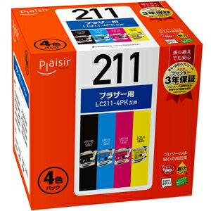 プレジール [ブラザー LC211-4PK 互換]インクカートリッジ(4色パック) Plaisir PLE-BR211-4P | |