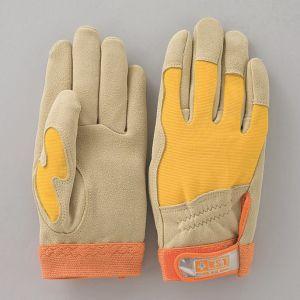 D523 1双 L 鹿革ウェーブカットグローブ甲メッシュ ベージュ+イエロー+オレンジ色 | |