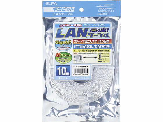 ELPA CAT6フラットLANケーブル 10m ホワイト LAN-FT1100(W) | |