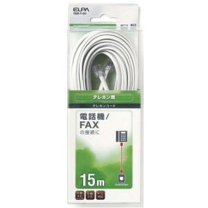 ELPA 電話線 ケーブル 15m 6極4芯 ホワイト モジュラーケーブル 電話線コード テレホンコード 交換 エルパ TEW-T150【送料無料】 | |
