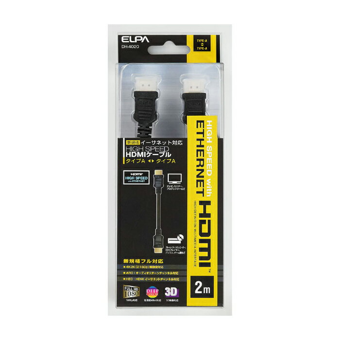 ELPA エルパ イーサネット対応 2.0m HDMIケーブル A-A DH-4020 | |