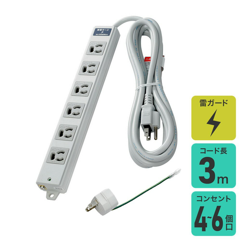 エルパ 事務所向け電源タップ コード長3m | AC: 6個口 4個口 | 雷ガード: あり なし | | |