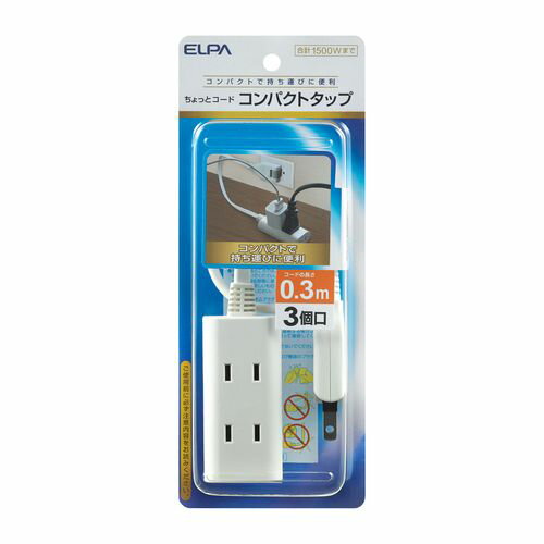 ELPA ちょっとコード タップ 3個口 0.3m [コンパクト 電源タップ 延長コード コンセント 持ち運び 旅行 出張] WB-CT303B(W) 爆買 | |