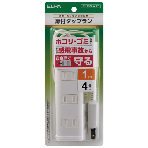 ELPA エルパ 扉付タップラン 延長コード 4個口1m ホワイト WBT-N4010BW(2471969) | |