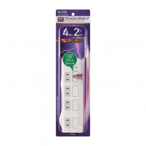 ELPA 耐雷フラットスイッチ付タップ4P2m