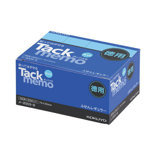 【レビュー投稿で100円OFFクーポン】コクヨ タックメモ お徳用 付箋 75×25 青 100枚×20 メ-2003-B 中 幅 ふせん インデックス メモ ノート | |