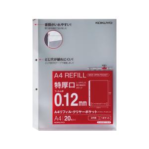 【A4-S】コクヨ/A4リフィル<ワイドオープンポケット>(2穴・特厚口)20枚(AH2112-2)ポケットの挿入口が端まで開いて書類が入れやすい KOKUYO | |