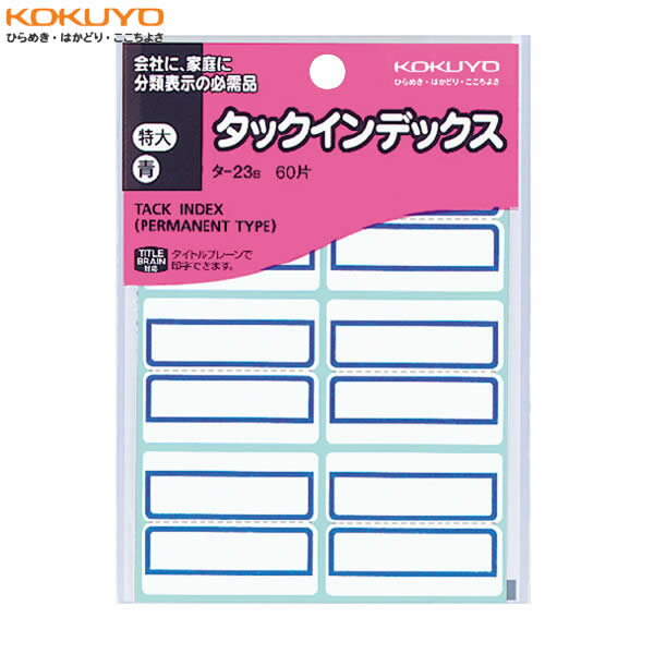 コクヨ タックインデックス 紙ラベル 特大 青 6片×10枚 タ-23B | |